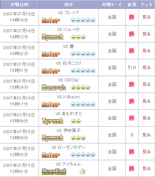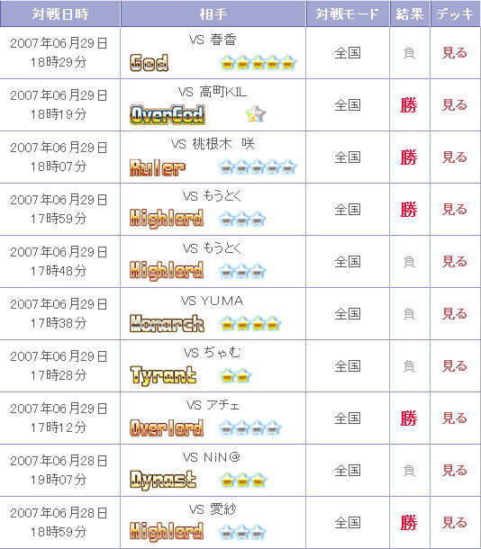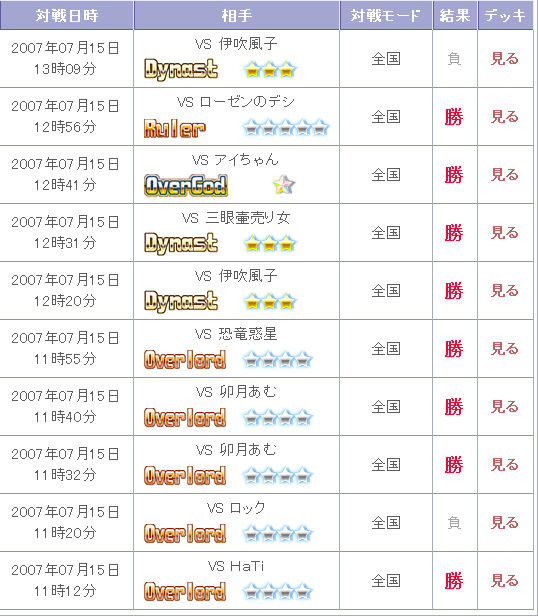今回の戦績:5勝5敗 マァマァダネ(((ノ´ー`)ノ